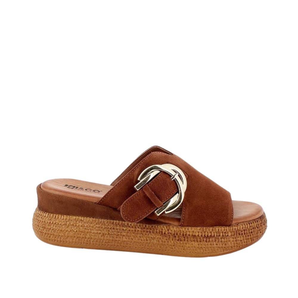 Elegantna i izuzetno udobna ženska natikača brenda Igi&Co izrađena je od kvalitetne prirodne kože koja omogućava stopalu da diše i pruža dugotrajnu udobnost. Model je dizajniran s širokim kožnim remenom i dekorativnom kopčom, koji stabilno drže stopalo i daju sandali moderan, profinjen izgled.
