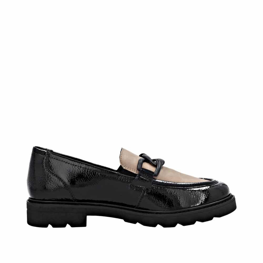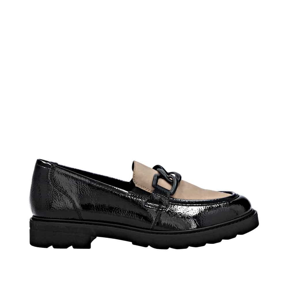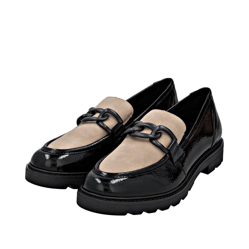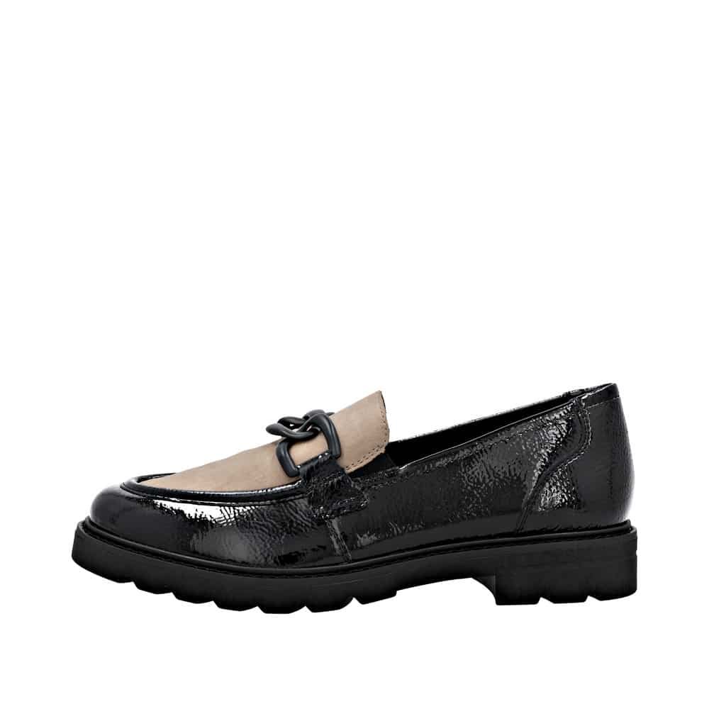 Vječna mokasina, crna s dodatkom brušene kože na gornjištu, lakirana s dostatnom malom petom, gumiranim džoništem, sistemom obuješ i ideš, a sve opisano ponuđeno je u novoj kolekciji Remonte za jesen. Uz malu peticu od 2 cm nema bojazni od opterećenja kralježnice niti boli u listovima od dugog stajanja ili hodanja. Najbolji je osjećaj imati novi par obuće kojeg lako i jednostavno kombinirate uz sve odjevne kombinacije. Iz sezone u sezonu sve kombinacije se divno nose uz uvijek traženu crnu boju, uz koju svaka kombinacija izgleda drugačije i posebno.