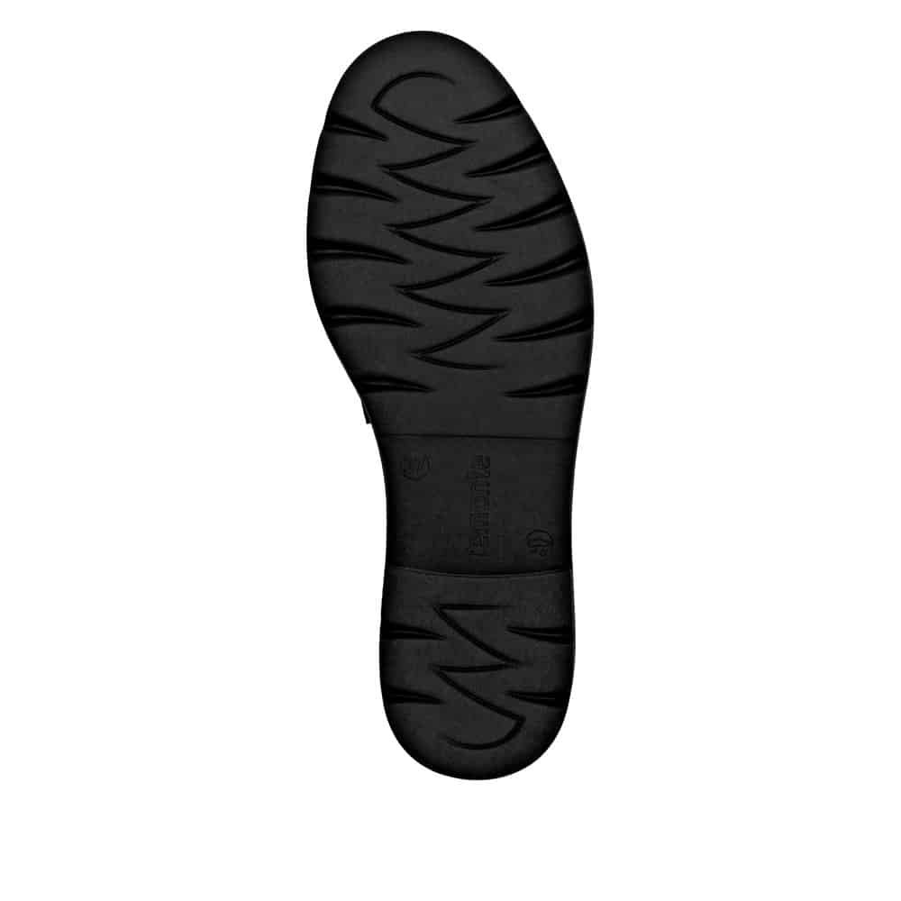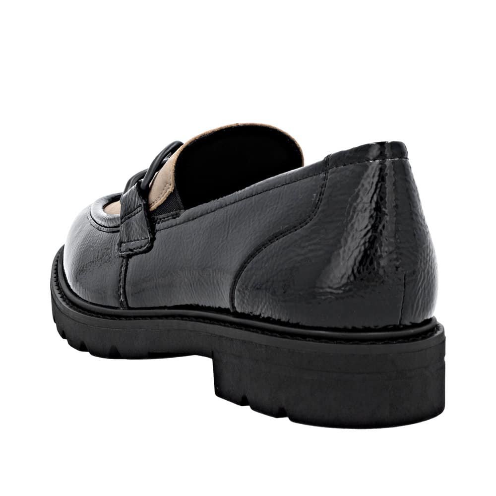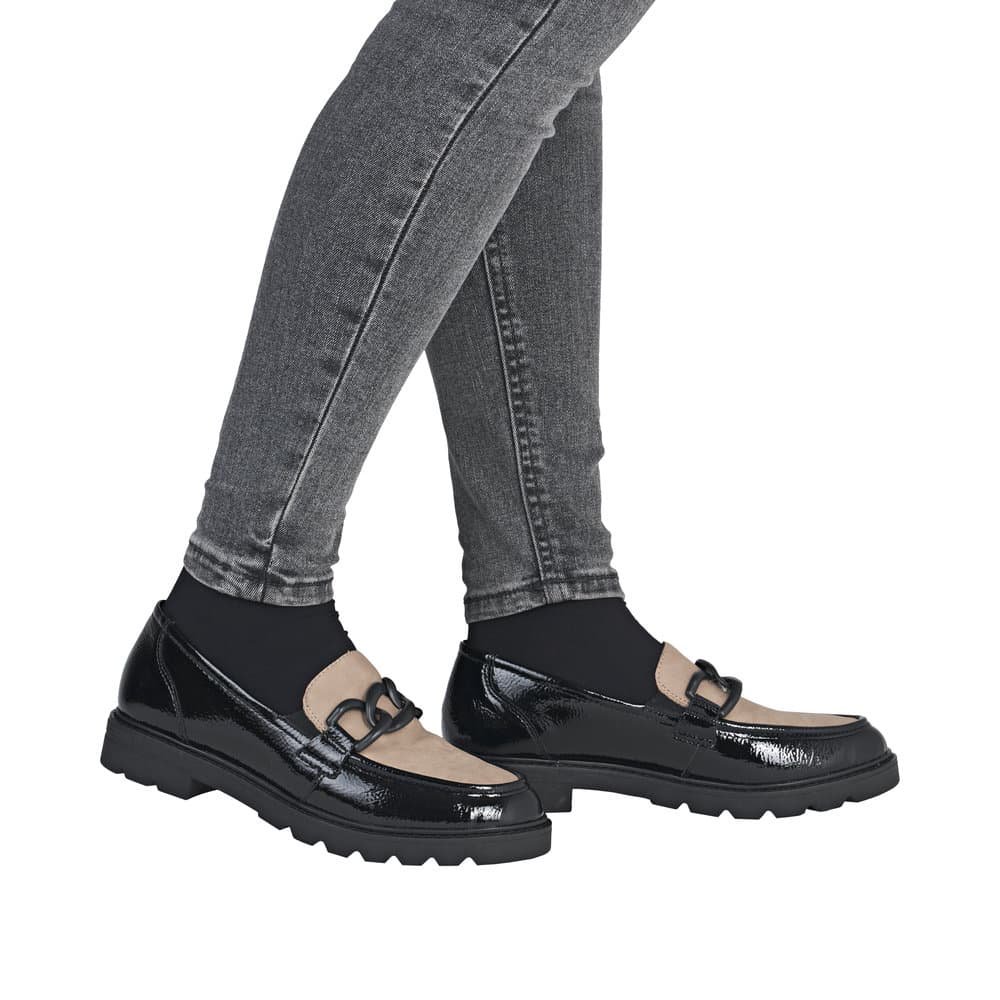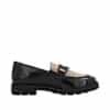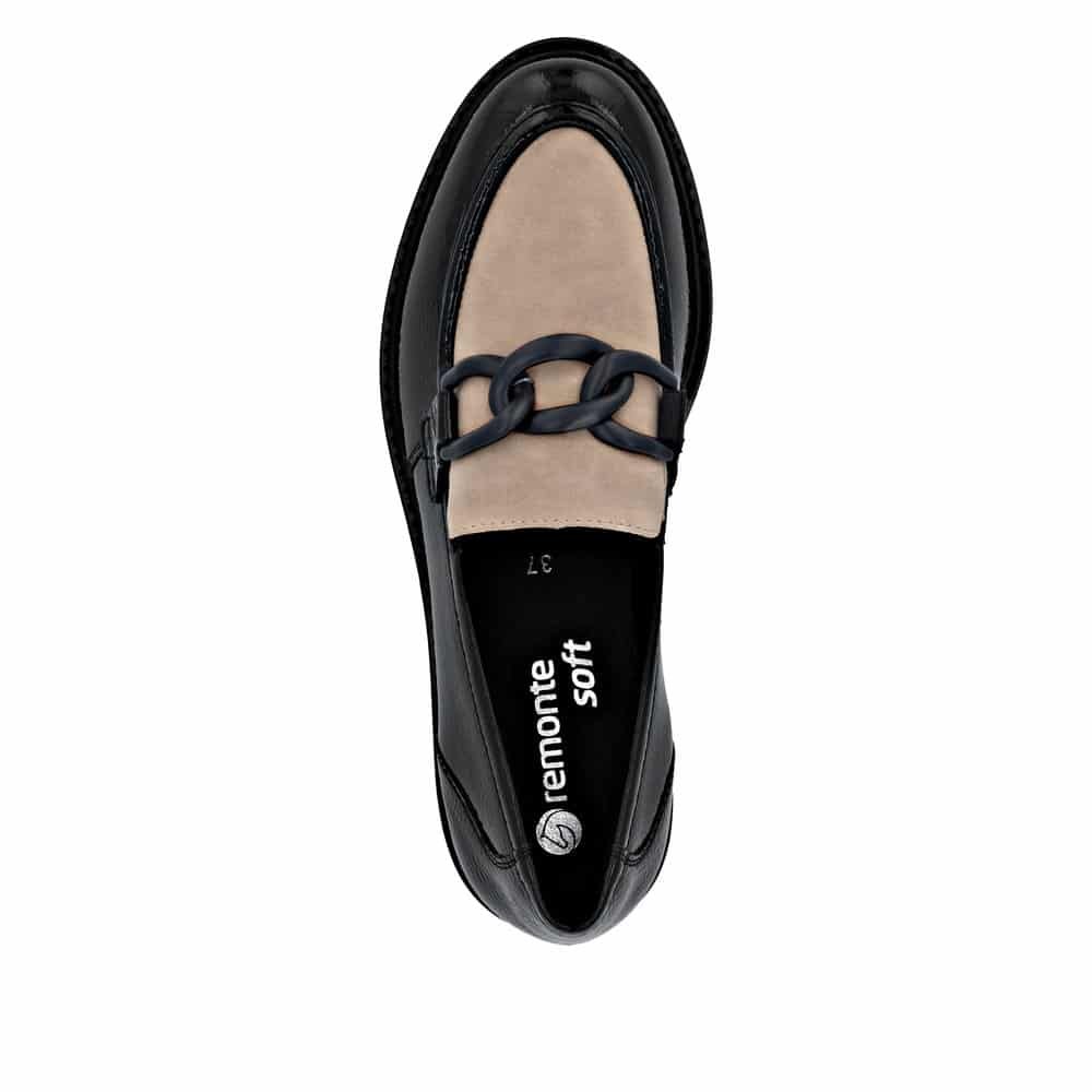 Vječna mokasina, crna s dodatkom brušene kože na gornjištu, lakirana s dostatnom malom petom, gumiranim džoništem, sistemom obuješ i ideš, a sve opisano ponuđeno je u novoj kolekciji Remonte za jesen. Uz malu peticu od 2 cm nema bojazni od opterećenja kralježnice niti boli u listovima od dugog stajanja ili hodanja. Najbolji je osjećaj imati novi par obuće kojeg lako i jednostavno kombinirate uz sve odjevne kombinacije. Iz sezone u sezonu sve kombinacije se divno nose uz uvijek traženu crnu boju, uz koju svaka kombinacija izgleda drugačije i posebno.