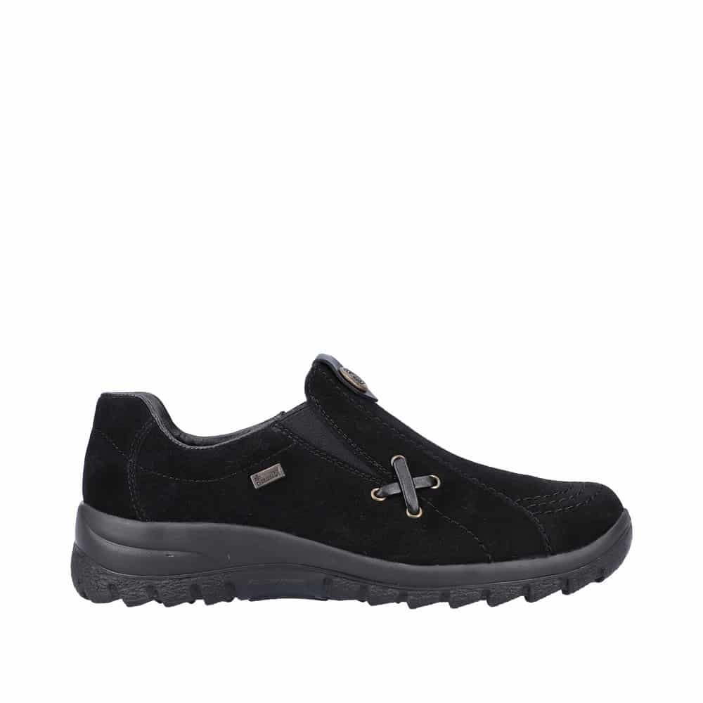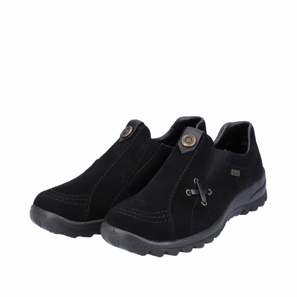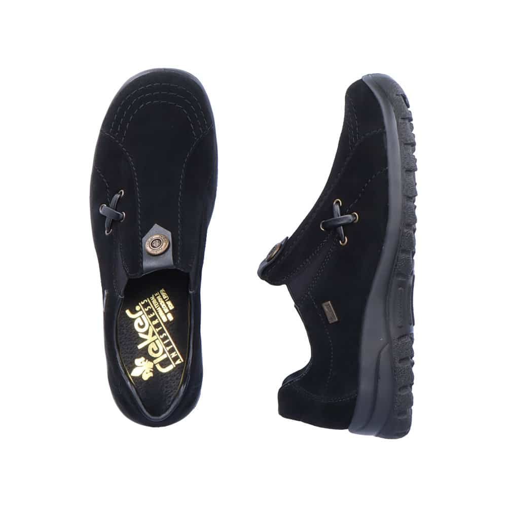 Predstavljamo vam cipelu koja je prisutna u Rieker kolekciji već nekoliko sezona i koja je stekla povjerenje žena na način da se kupuju po dva para kako bi imali u ormaru i rezervu. Po čemu je prepoznata: kožna cipela s tex membranom koja vas štiti od svake kiše, snijega, obuvaju je sve širine stopala, obuvanje je poput mokasine s gumicama sa strane kako bi vam noga lakše ušla u cipelu, džon je gumiran i stabilan i za kliske površine.