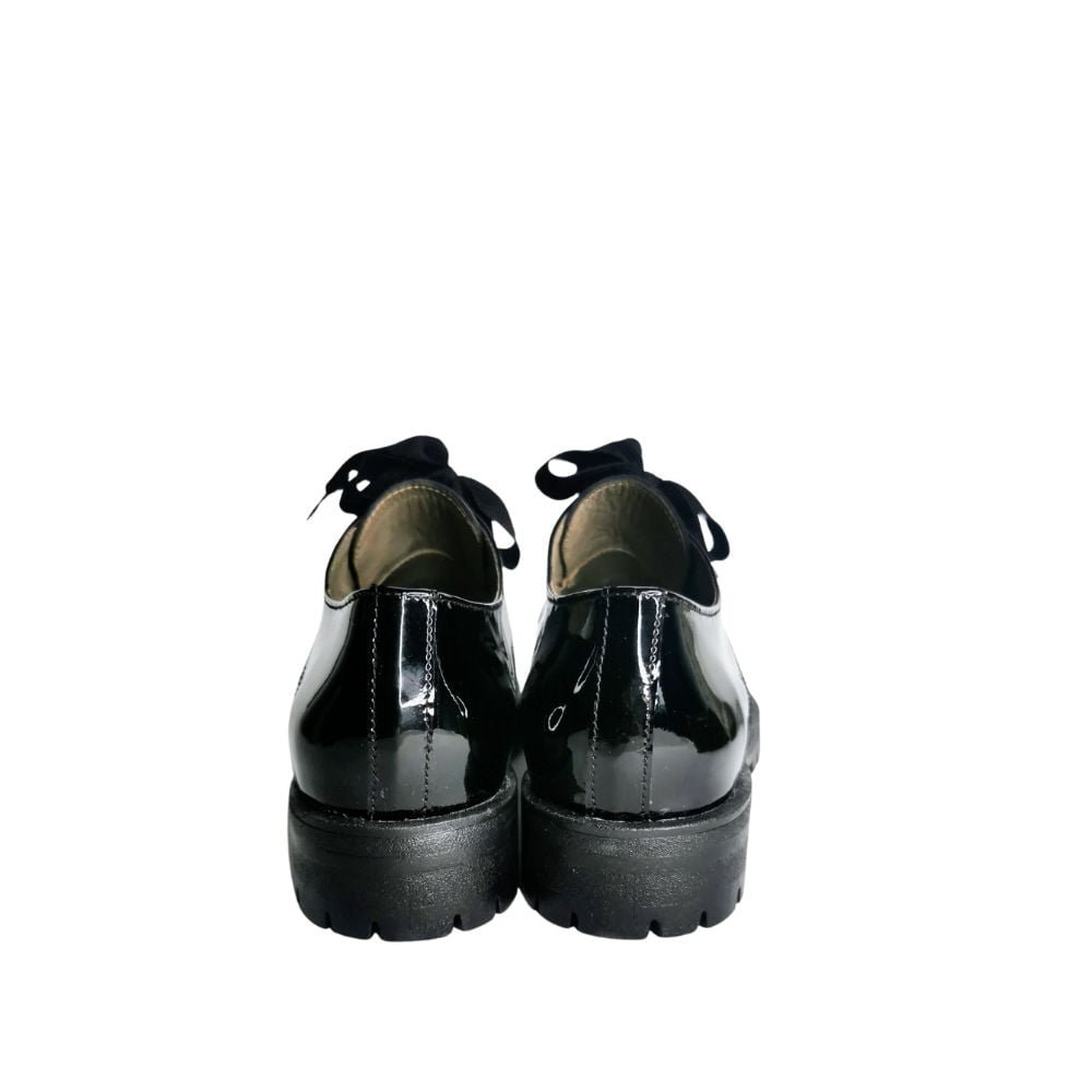 Funkcionalna ženska cipela rađena je od kože, jednostavna za obuvanje s vezicama kojim podešavate širinu cipele po vašoj potrebi, pogodna je za sve odjevne kombinacije i omogućava cjelodnevno hodanje . Kombinacija lak crne boje jednostavna je za kombiniranje svih stilova odjeća i poslovnih događanja, ali je ipak najvažnija Ziggyjeva udobnost, lakoća, gipkost i jednostavnost.