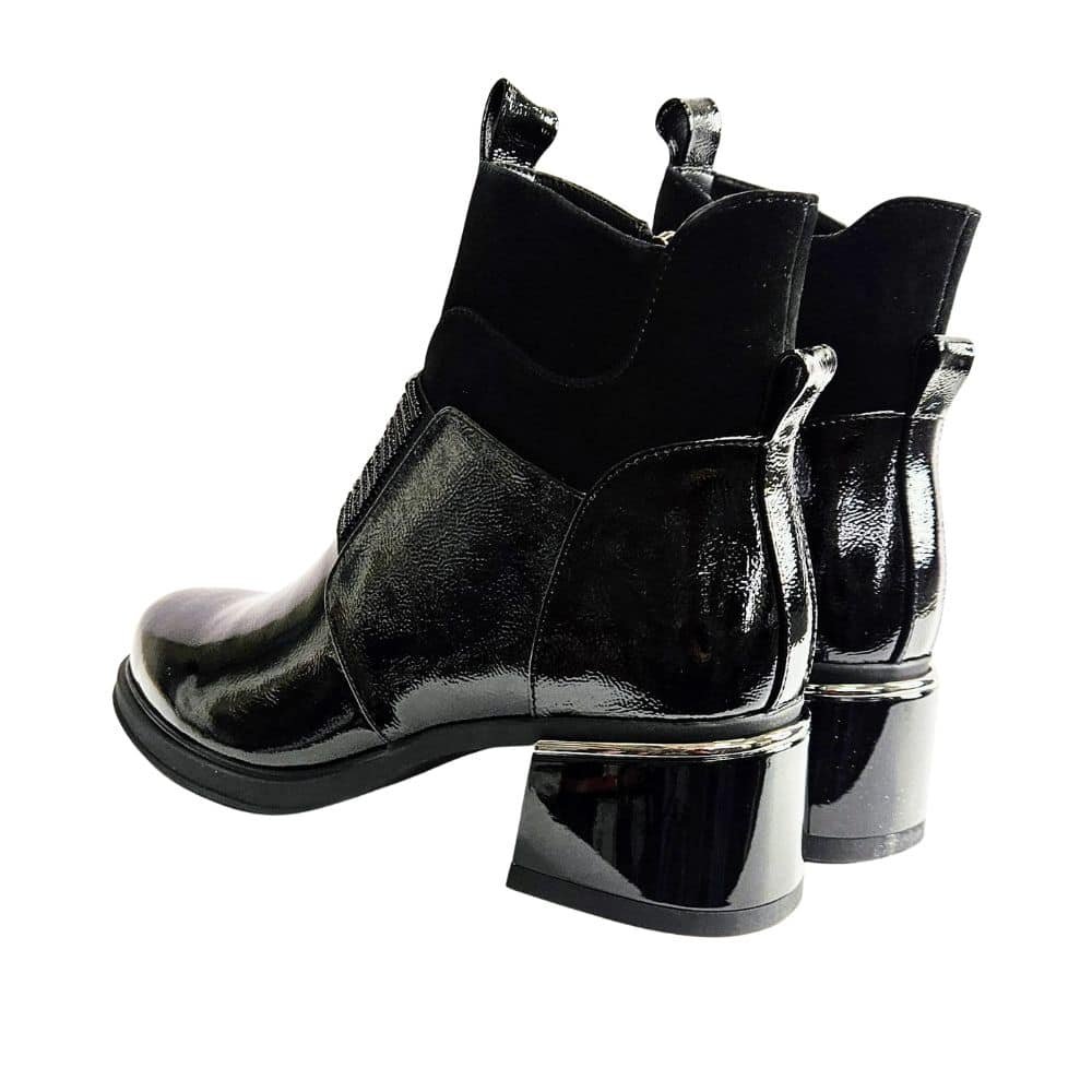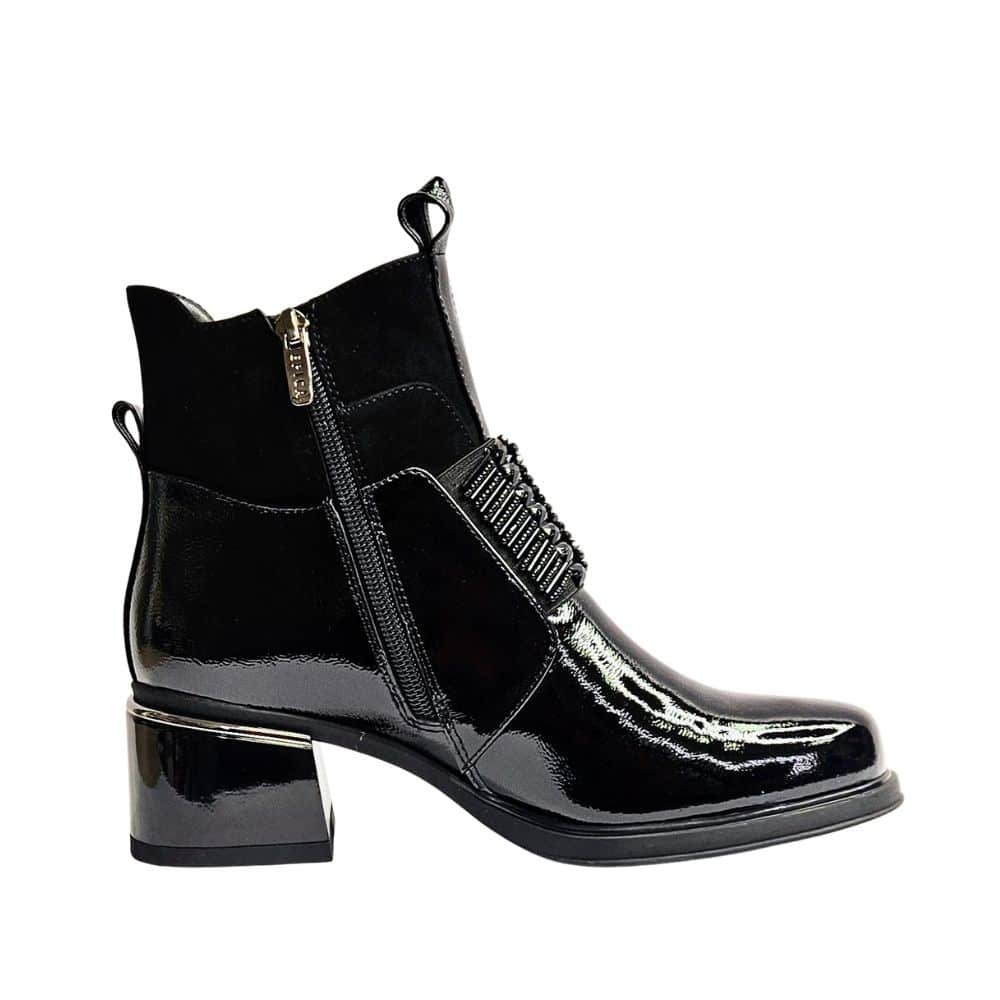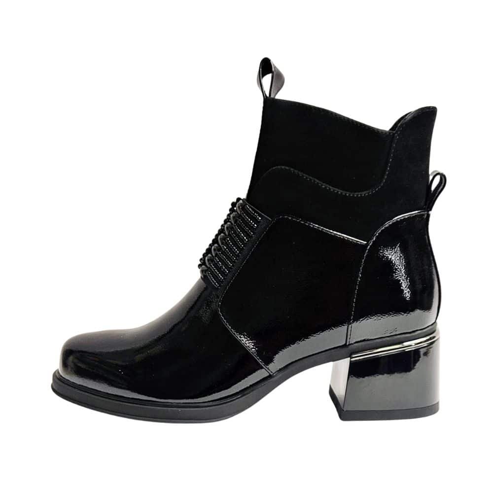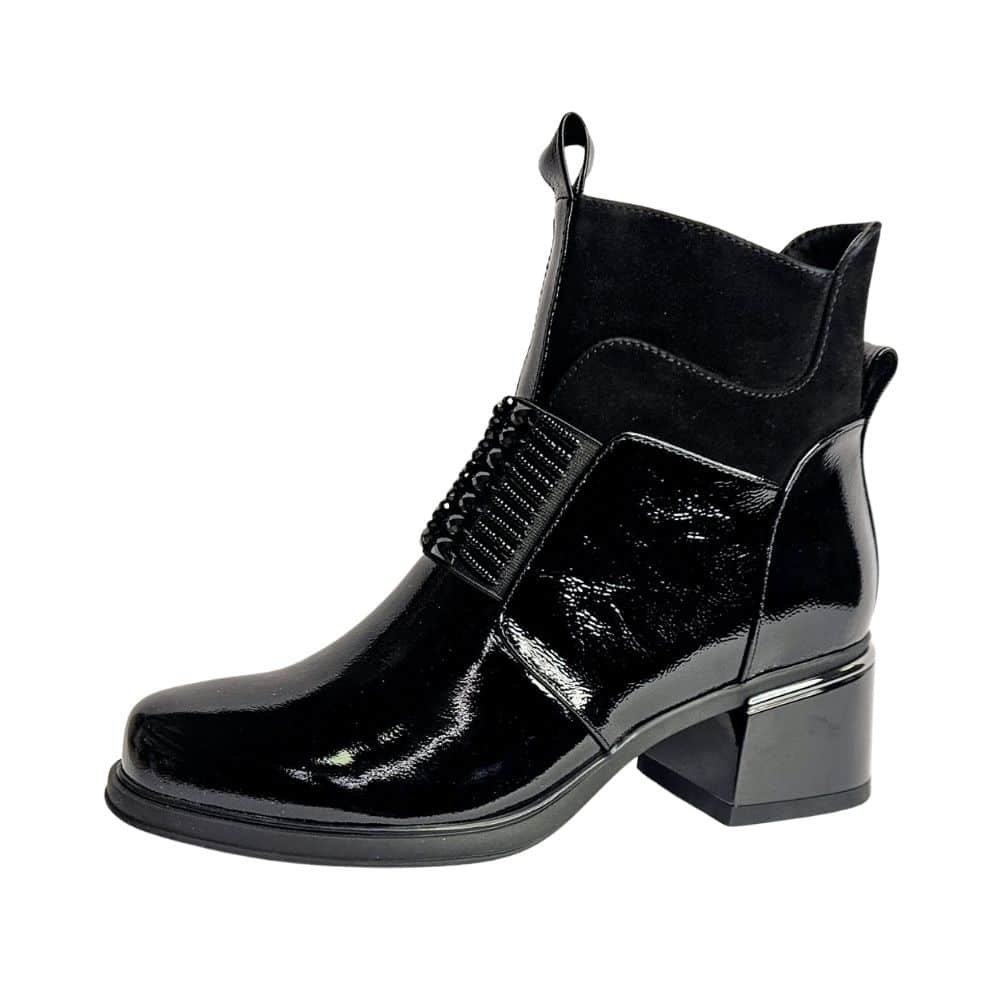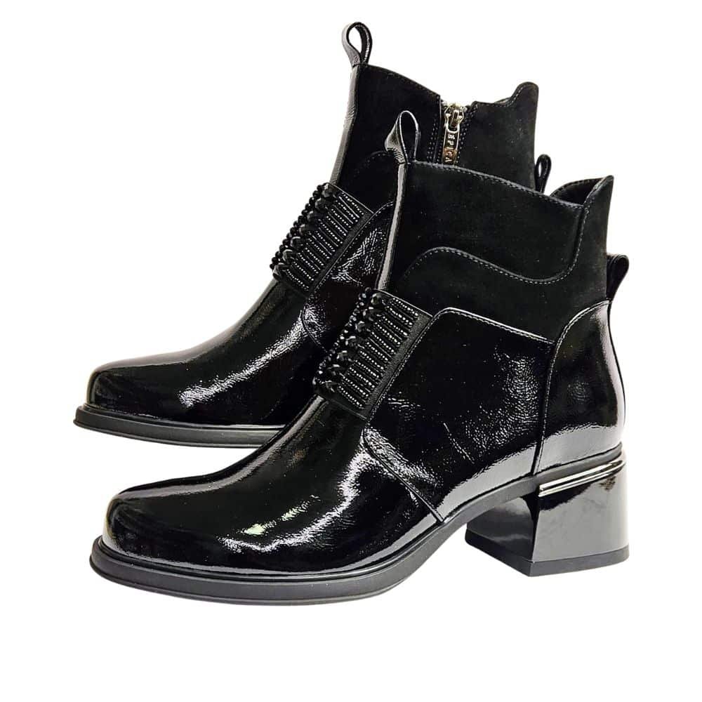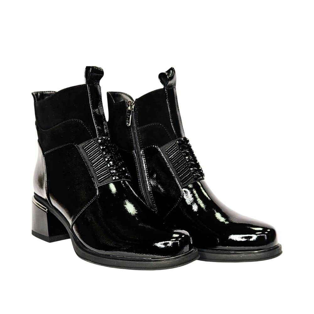 Izvrsna peta, kožna, lakirana / pa joj kiša ne može ništa ( kapljice samo kliznu s gornjišta), moćna, stabilna, drugačija sve je to model kojeg vam predstavljamo. Obuvamo je uz patent sa strane uz glatko gornjište koje ne pravi problem niti jednom stopalu. Čak i ako inače ne nosite petu ovaj model vas neće umoriti jer je peta stabilna uz izraženi potplat koji svaki korak čini ugodnim i stabilnim.