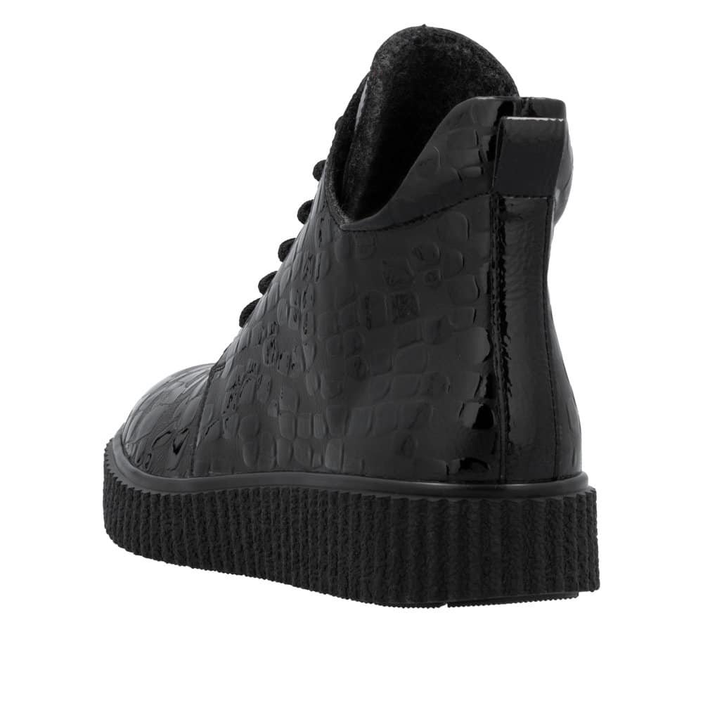Lagana gležnjača za sve prilike i za sve odjevne kombinacije, meka, savitljiva, jednostavna za obuvanje i za održavanje. Boja koja je prilagodljiva svakoj vašoj odjevnoj kombinaciji. Svaka cipela rađena u laku daje dojam profinjene elegancije koja će svaku nogu učiniti posebnom, a udobnost neće biti dovedena u pitanje. Dodatna prednost je i nagibna peta za ugodno hodanje i stajanje. Izrazito lagana. Kombinacija vezanja i patenta za obuvanje ima dvostruku prednost, prvo regulirate širinu prema svom stopalu, drugo, jednostavno obuvate uz patent sa strane.