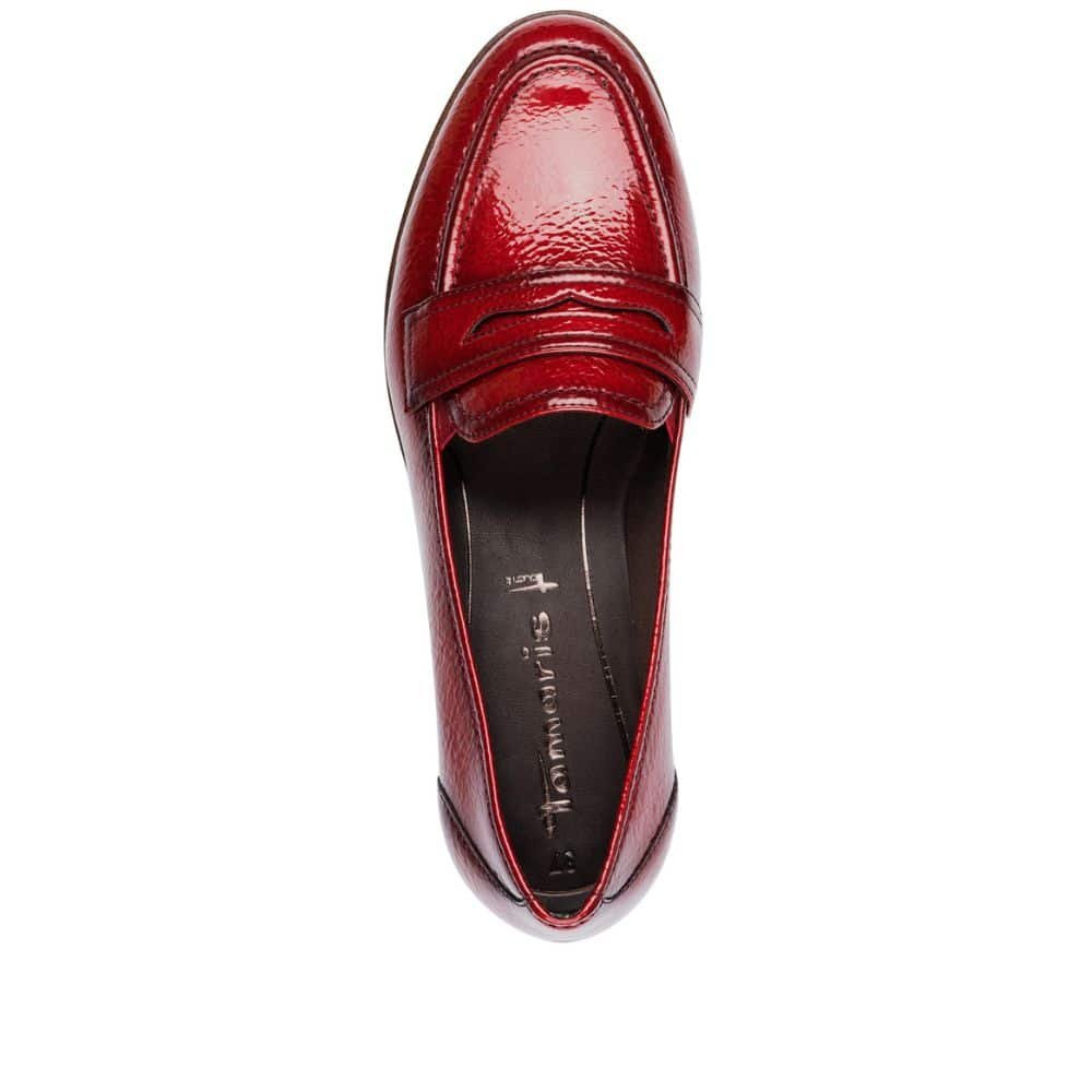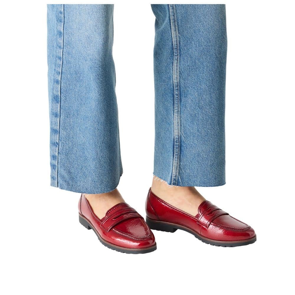 Crvena, lakirana, s dostatnom malom petom, gumiranim džoništem, sistemom obuješ i ideš, sve opisano našli ste u novoj kolekciji Tamarisa za jesen uz mokasinu koju vam predstavljamo. Uz malu peticu od 2 cm nema bojazni od opterećenja kralježnice niti boli u listovima od dugog stajanja ili hodanja. Najbolji je osjećaj imati novi par obuće kojeg lako i jednostavno kombinirate uz sve odjevne kombinacije. Iz sezone u sezonu sve kombinacije i nijanse crvene boje uvijek je rado odabrana boja koja se divno uklapa i lako kombinira sa svim bojama jeseni / zime, a pri tome svaku kombinaciju čine drugačijom i posebnom.