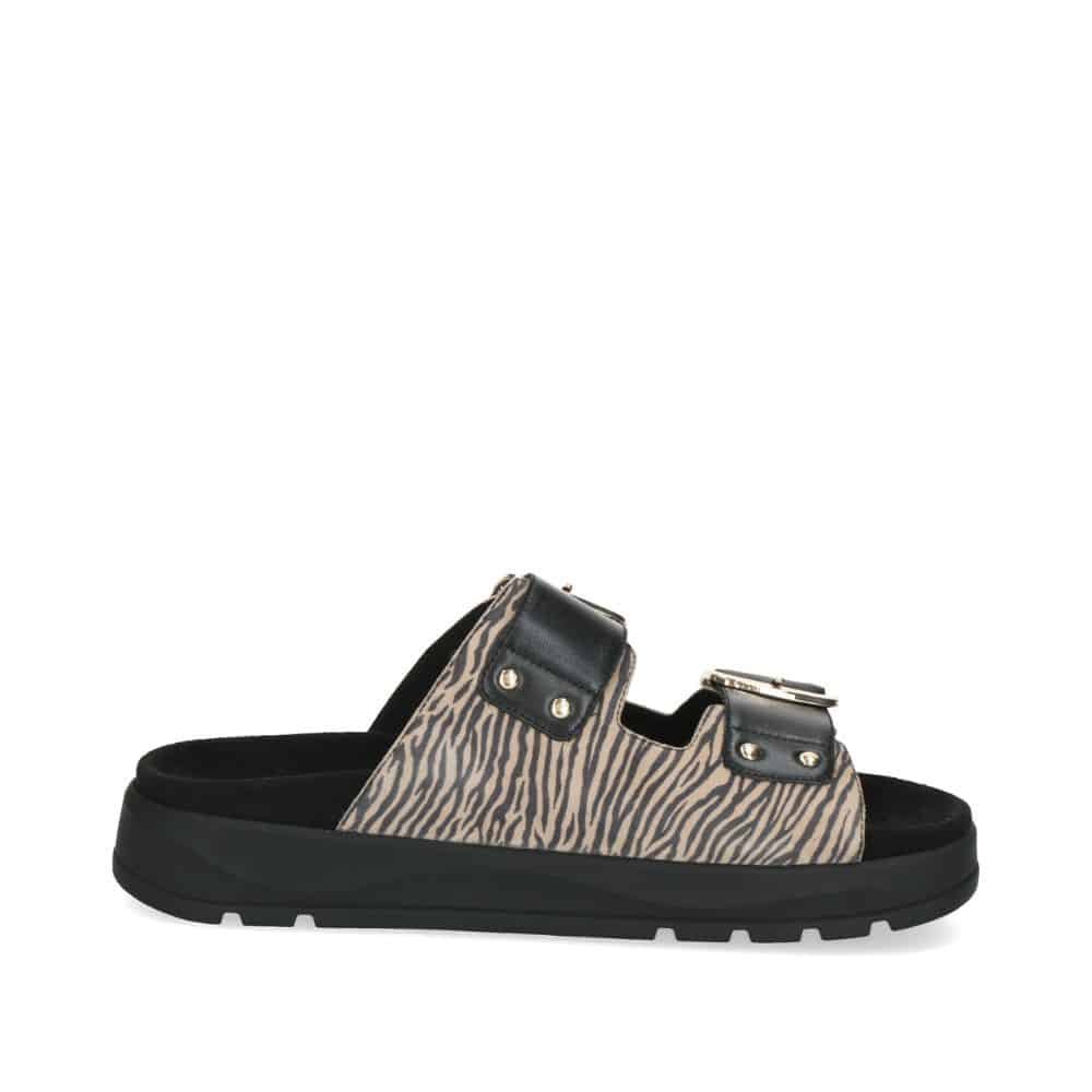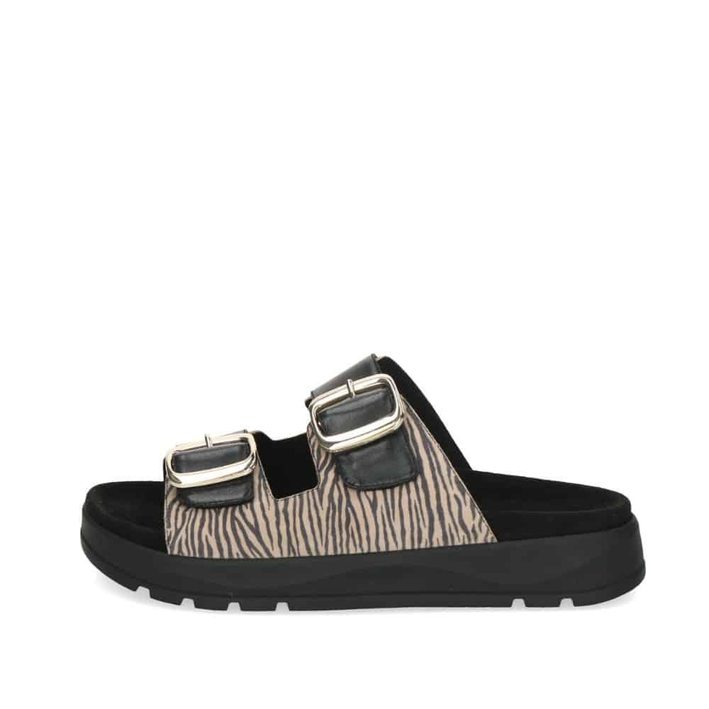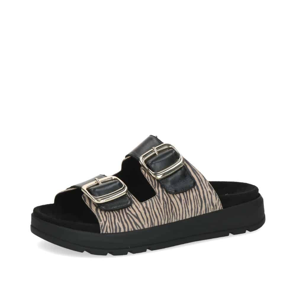 Moderna i izuzetno udobna Caprice natikača s dva podesiva remena savršen je izbor za svakodnevno nošenje. Dizajnirana je kako bi pružila maksimalnu stabilnost, prilagodljivost i lakoću koraka, uz atraktivan izgled koji se jednostavno uklapa u različite stilove. Gornjište krasi dekorativni uzorak u kombinaciji s dva široka remena i metalnim kopčama koje omogućavaju individualno podešavanje širine, čime se natikača savršeno prilagođava stopalu. Zahvaljujući anatomski oblikovanoj tabanici, hodanje je prirodno i rasterećuje stopalo čak i tijekom cjelodnevnog nošenja.