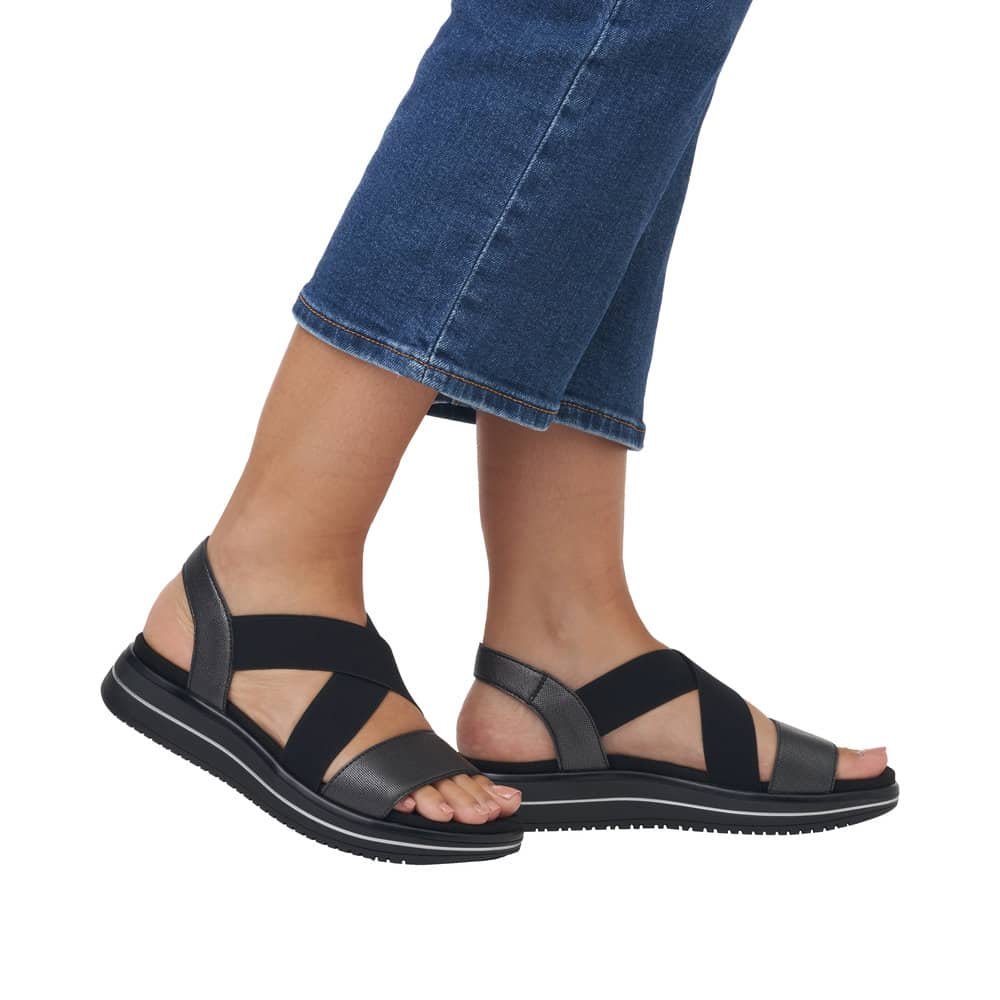 Sportska sandala s izvrsnim potplatom, jednostavnim obuvanjem i uvijek traženom crnom bojom. Poprečni elastični remeni stabilno drže stopalo prilikom hodanja, a istovremeno vam daje slobodu prilikom hodanja ukoliko vam otiče stopalo za vrijeme ljetnih dana. Sama tabanica nema podignutih rubova što znači neometanu udobnost u izazovima ljeta i znojenja stopala. Ne zaboravite da je tijekom ljetne sezone važno obuću koju ste nosili taj dan, sutra dan zamijeniti s drugim parom obuće iz razloga da nošeni par odmorite i kako bi se uložna tabanica osušila i vratila svoju izvornu formu koja se promijeni prilikom hodanja. Na taj način produžiti ćete trajnost obuće.