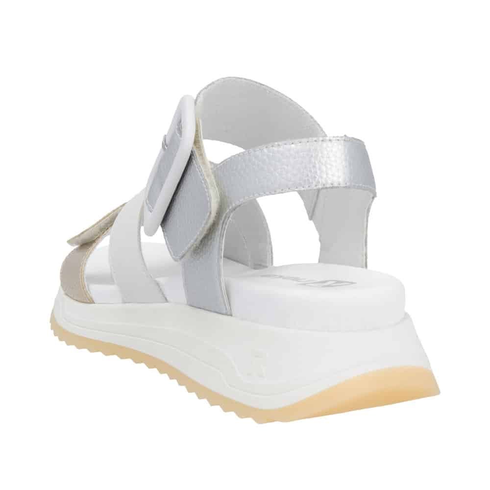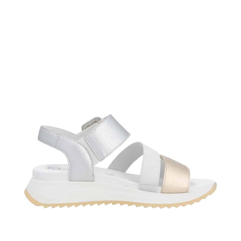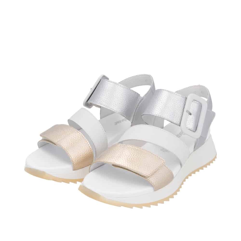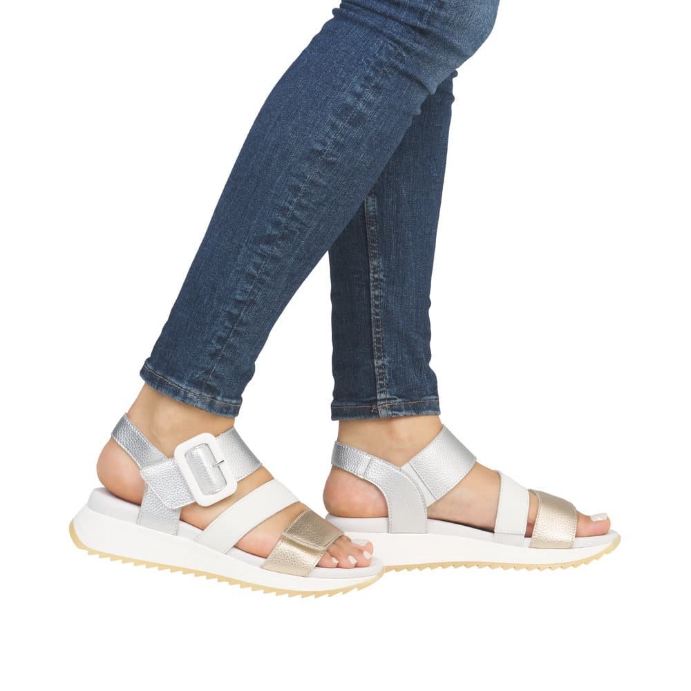 Uvijek voljena bijela boja za ljetne dane. Odlična peta s kojom stabilnost nije upina, regulirana je s čičkom pa sami sebi prilagođavate širinu, divno je kombinirate na sve odjevne kombinacije. Za svaki korak lak i uz sve ljetne poslovne izazove. One dame koje imaju izazov s deformacijom kosti, preporuka je obavezno probati sandalu da utvrdite da li vam otvor na remenima neće praviti pritisak na kost. Dodatna prednost je prednji čičak za prste s kojim izvrsno regulirate širinu tijekom dana ovisno koliko vam noga otiče od dugog stajanja, hodanja, vrućine. Za sve ostale dame, model je stvoren za cijeli dan hodanja, uz poslovni izgled ili uz traper. Potpis Rieker za sve ostalo garantira.