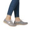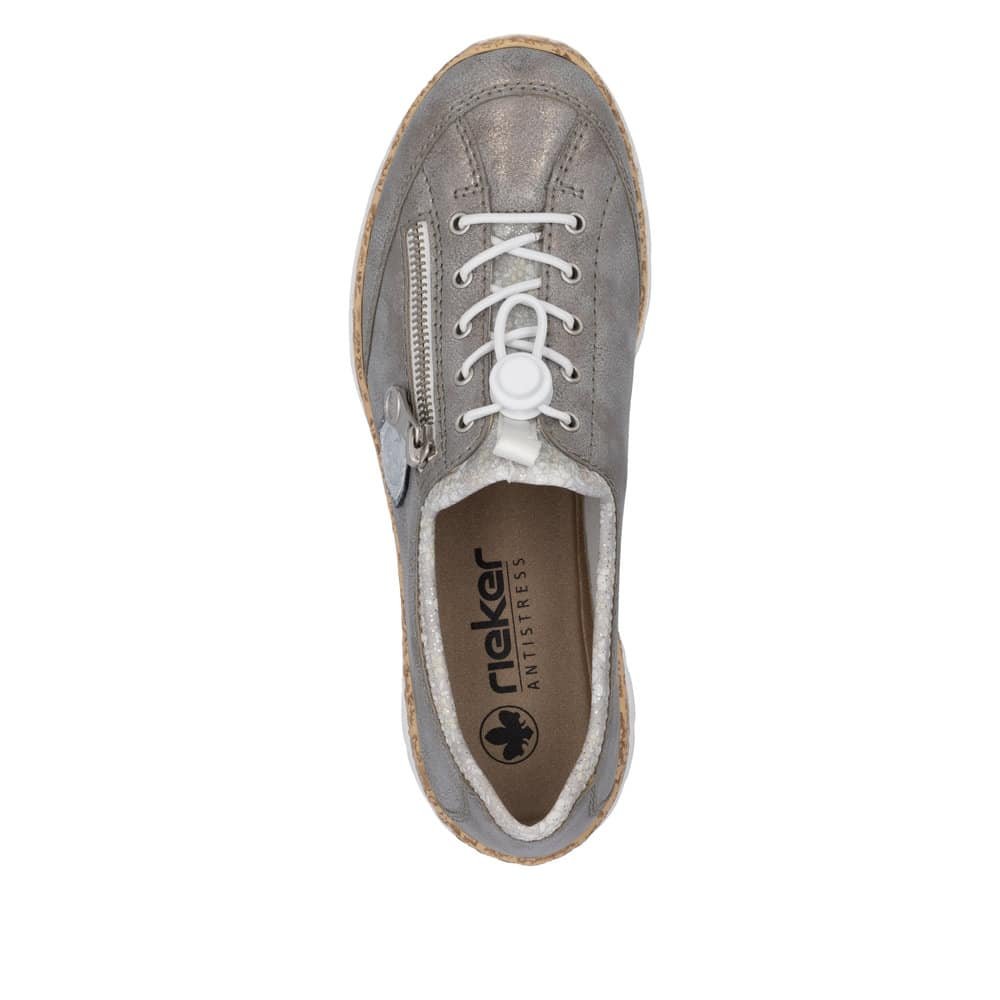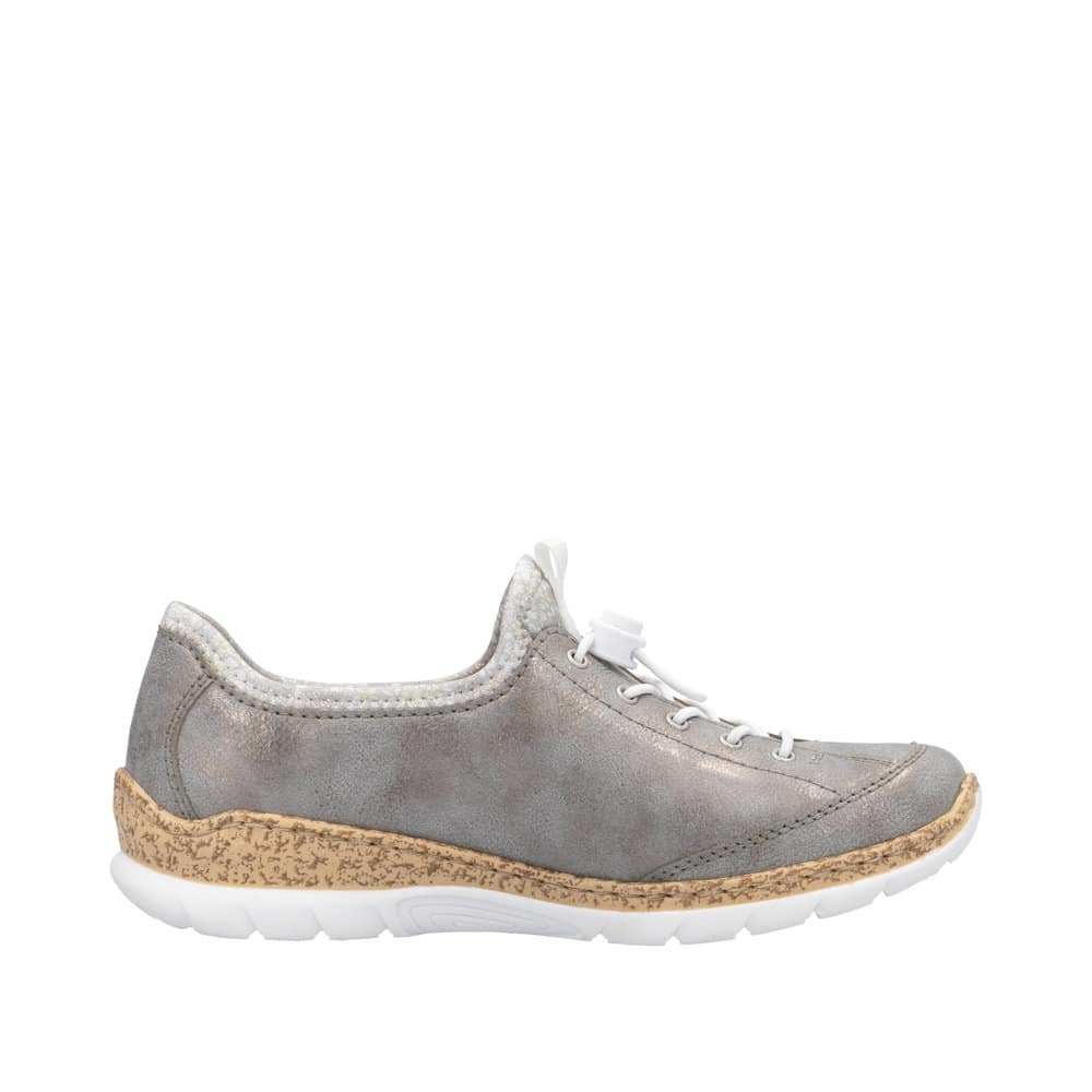 Postoje modeli iz Rieker kolekcije koji svake sezone imaju sve više obožavateljica, a jedan od tih modela je i tenisica s memory ulošcima. Ovaj model iz sezone u sezonu potvrđuje dokazanu kvalitetu obuće iz Riekerove kolekcije. Pa ćemo vam nabrojati: Tenisica je “brza” ( obuvanje poput mokasine uz elastične vezice za prilagodbu širine), lagana ( svaka cipela iz kolekcije Rieker jednostavno ne znate da imate na nogama), funkcionalna ( na sve i uz sve je kombinirajte), hodate / vozite se….ma što god da morate, želite, trebate ovaj model obujete i spremne ste. Softy uložna tabanica garantira mekoću svakog koraka.