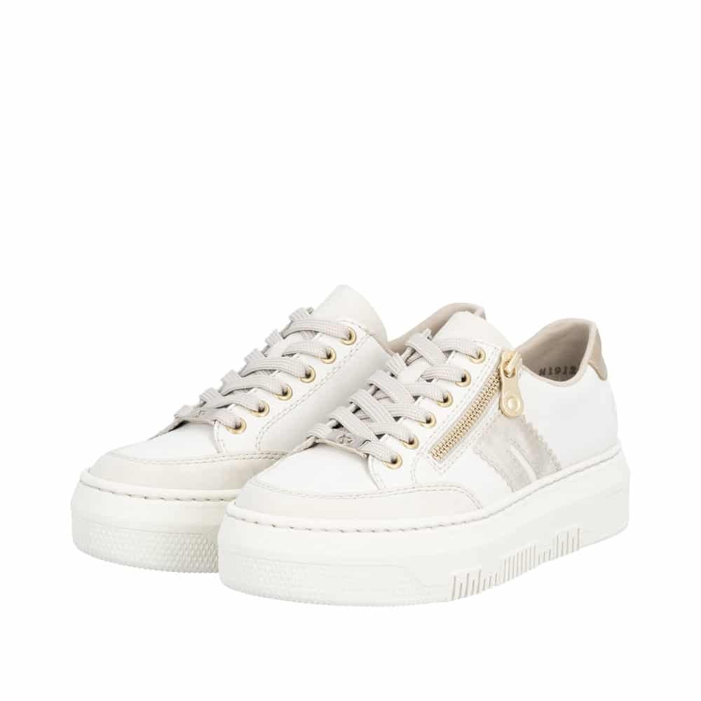 Elegantna i praktična ženska tenisica koja spaja moderan izgled i svakodnevnu udobnost. Model M1912-80 dolazi u nježnoj svijetloj nijansi s decentnim zlatnim detaljima koji joj daju sofisticiran i urban karakter. Idealan je izbor za žene koje žele sportsku obuću s dozom elegancije – savršenu za posao, šetnju gradom ili casual kombinacije. Tenisica je na vezanje, što omogućava prilagođavanje širine stopalu, dok funkcionalni bočni patentni zatvarač omogućava brzo i jednostavno obuvanje bez potrebe za ponovnim vezanjem. Povišeni, lagani đon pruža stabilnost i udobnost pri hodu, a njegov trendi dizajn dodatno naglašava sportsko-elegantni stil.