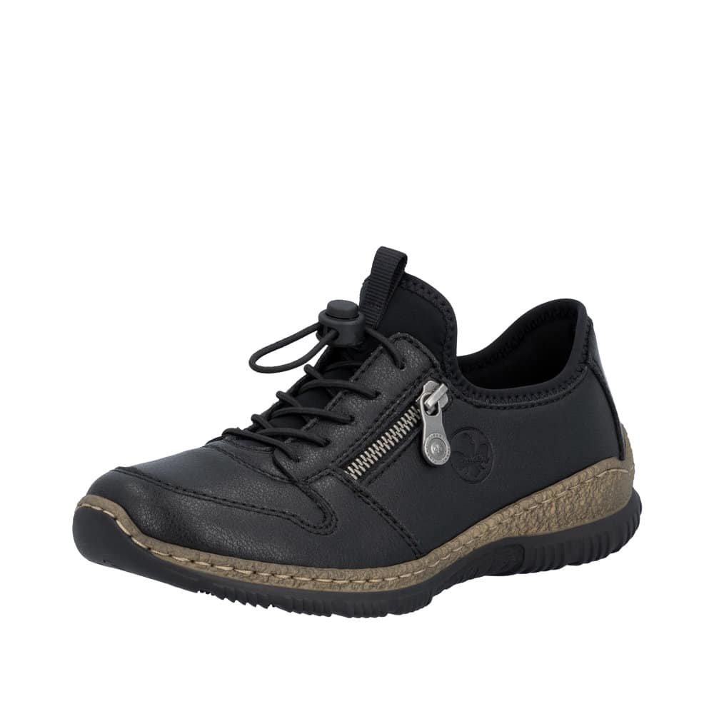 Postoje modeli iz Rieker kolekcije koji svake sezone imaju sve više obožavateljica, a jedan od tih modela je i tenisica s memory ulošcima. Ovaj model iz sezone u sezonu potvrđuje dokazanu kvalitetu obuće iz Riekerove kolekcije. Tenisica je “brza” ( obuvanje poput mokasine uz elastične vezice za prilagodbu širine), lagana ( svaka cipela iz kolekcije Rieker jednostavno ne znate da imate na nogama), funkcionalna ( na sve i uz sve je kombinirajte), hodate / vozite se….ma što god da morate, želite, trebate ovaj model obujete i spremne ste. Softy uložna tabanica garantira mekoću svakog koraka. S crnom bojom nema pogreške u kombinicijama, a uvijek odlično može nositi i elegantno poslovne kombinacije