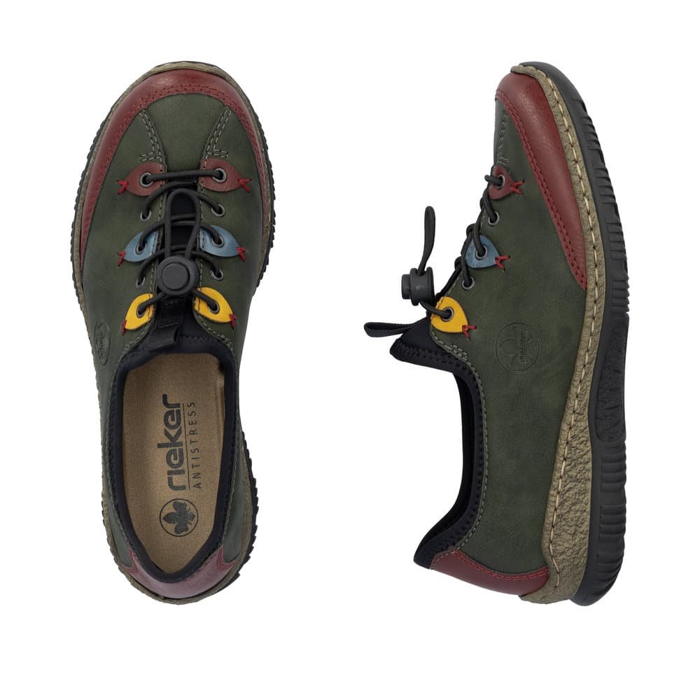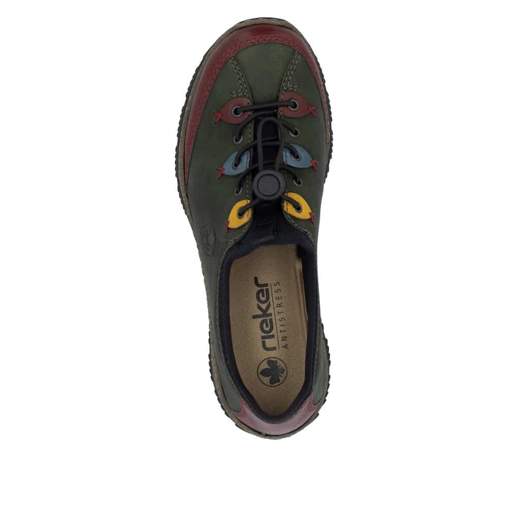 Postoje modeli iz Rieker kolekcije koji svake sezone imaju sve više obožavateljica, a jedan od tih modela je i tenisica s memory ulošcima. Ovaj model iz sezone u sezonu potvrđuje dokazanu kvalitetu obuće iz Riekerove kolekcije. Tenisica je “brza” ( obuvanje poput mokasine uz elastične vezice za prilagodbu širine), lagana ( svaka cipela iz kolekcije Rieker jednostavno ne znate da imate na nogama), funkcionalna ( na sve i uz sve je kombinirajte), hodate / vozite se….ma što god da morate, želite, trebate ovaj model obujete i spremne ste. Softy  uložna tabanica garantira mekoću svakog koraka. A tek  boja!!!! Možemo li bolje upotpuniti cijeli izgled ako odaberemo baš zelenu boju!!