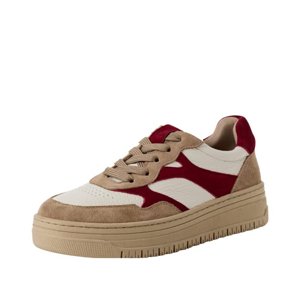 Prava urbana tenisica. Rađena u koži s dovoljnom širinom i dubinom da niti jednom stopalu neće praviti problem za obuvanje i nošenje. Divna kombinacija boja, bež s crvenim dodacima, čine je dovoljno posebnom, decentnom, ali i upečatljivom u kombinaciji jesenjih kolekcija. Lagana, s dovoljnom platformom da svaki korak bude mekan i softy. Vezanjem podešavate širinu svom stopalu. Ako je probate u kombinaciji haljine ili traper šosa izvrsno će se ukomponirati. Izaberite, obujte i uživajte.